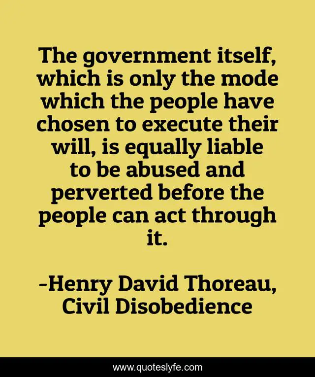 "Henry David Thoreau, Civil Disobedience Quotes." Quoteslyfe.com, 2025. Fri. 05 Dec. 2025. <https://www.quoteslyfe.com/quote/The-government-itself-which-is-only-the-174289>.