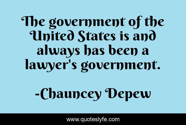 This page presents the quote "The government of the United States is and always has been a lawyer's government.". Author of this quote is Chauncey Depew. This quote is about always, united, lawyer,.