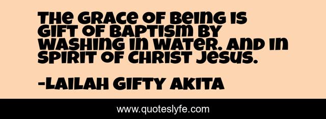 This page presents the quote "The grace of being is gift of baptism by washing in water. And in Spirit of Christ Jesus.". Author of this quote is Lailah Gifty Akita. This quote is about jesus-christ, christian, theology, inspirational, enthusiasm, baptism, inspiration,.