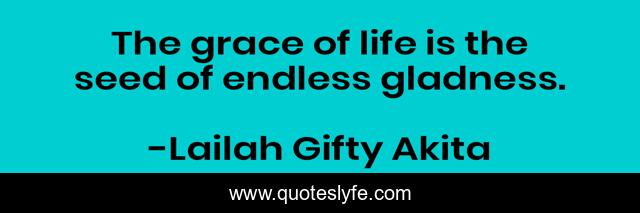 This page presents the quote "The grace of life is the seed of endless gladness.". Author of this quote is Lailah Gifty Akita. This quote is about life, grace, gladness,.