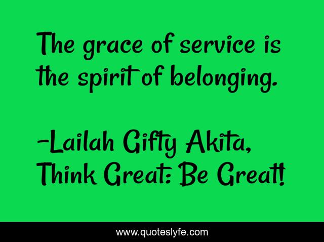 "Lailah Gifty Akita, Think Great: Be Great! Quotes." Quoteslyfe.com, 2025. Tue. 09 Dec. 2025. <https://www.quoteslyfe.com/quote/The-grace-of-service-is-the-spirit-195905>.