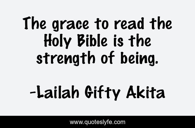 This page presents the quote "The grace to read the Holy Bible is the strength of being.". Author of this quote is Lailah Gifty Akita. This quote is about read, holy-bible, strength, christian,.