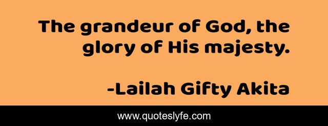 This page presents the quote "The grandeur of God, the glory of His majesty.". Author of this quote is Lailah Gifty Akita. This quote is about faith, great, christian, glory, inspiring-thoughts, god, religion, praise, worship,.