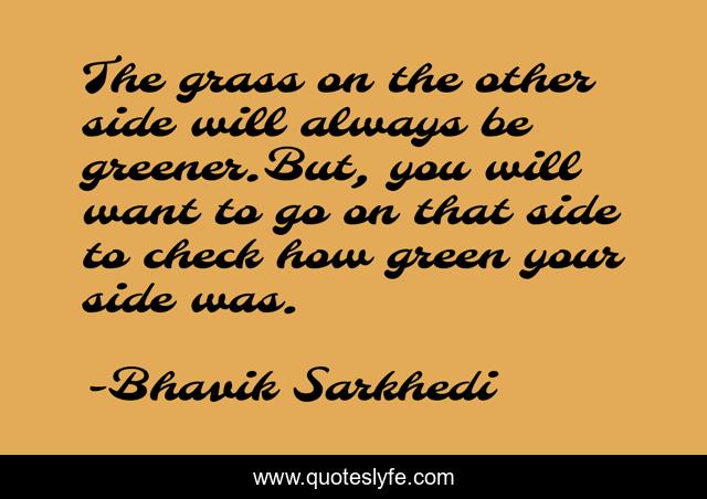 This page presents the quote "The grass on the other side will always be greener.But, you will want to go on that side to check how green your side was.". Author of this quote is Bhavik Sarkhedi. .
