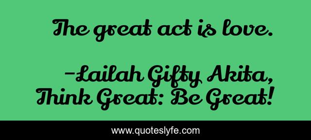 "Lailah Gifty Akita, Think Great: Be Great! Quotes." Quoteslyfe.com, 2025. Sun. 07 Dec. 2025. <https://www.quoteslyfe.com/quote/The-great-act-is-love-172887>.