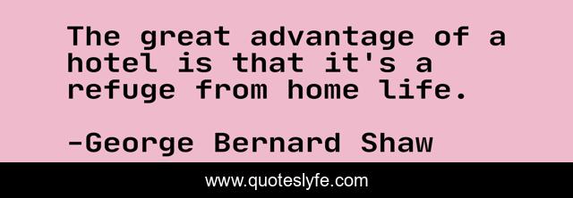 This page presents the quote "The great advantage of a hotel is that it's a refuge from home life.". Author of this quote is George Bernard Shaw. .