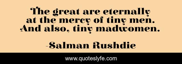 This page presents the quote "The great are eternally at the mercy of tiny men. And also, tiny madwomen.". Author of this quote is Salman Rushdie. .
