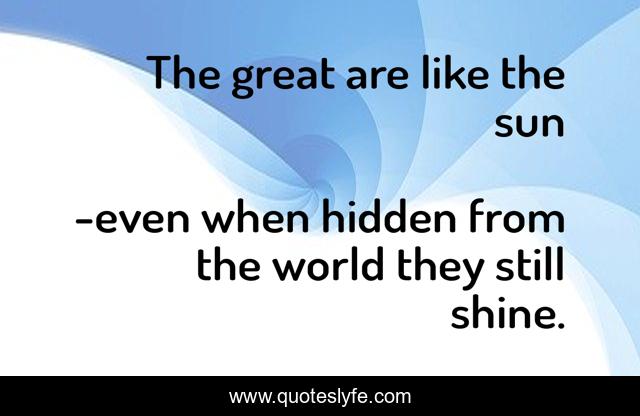 "even when hidden from the world they still shine. Quotes." Quoteslyfe.com, 2025. Sat. 06 Dec. 2025. <https://www.quoteslyfe.com/quote/The-great-are-like-the-sun-190014>.
