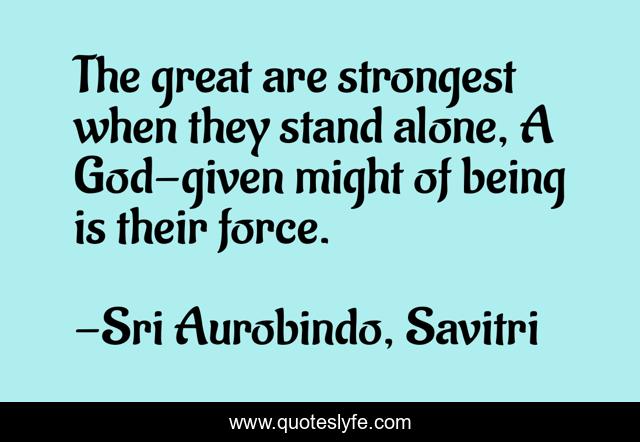 This page presents the quote "The great are strongest when they stand alone, A God-given might of being is their force.". Author of this quote is Sri Aurobindo, Savitri. This quote is about spiritual-growth, spiritual, spirituality,.