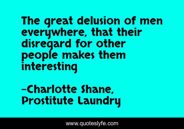 "Charlotte Shane, Prostitute Laundry Quotes." Quoteslyfe.com, 2025. Sat. 06 Dec. 2025. <https://www.quoteslyfe.com/quote/The-great-delusion-of-men-everywhere-that-127561>.
