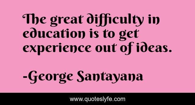 This page presents the quote "The great difficulty in education is to get experience out of ideas.". Author of this quote is George Santayana. This quote is about great, ideas, experience,.