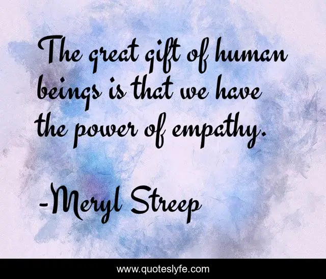 This page presents the quote "The great gift of human beings is that we have the power of empathy.". Author of this quote is Meryl Streep. This quote is about great, empathy, gift,.
