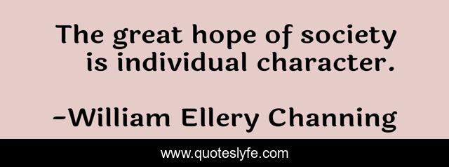 This page presents the quote "The great hope of society is individual character.". Author of this quote is William Ellery Channing. .