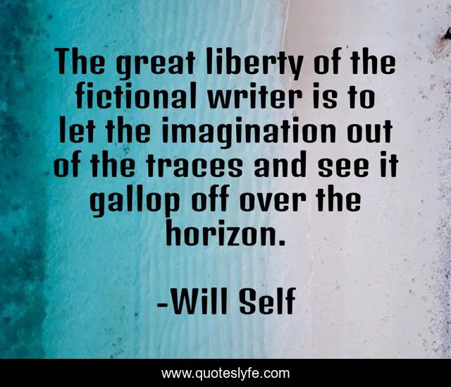 This page presents the quote "The great liberty of the fictional writer is to let the imagination out of the traces and see it gallop off over the horizon.". Author of this quote is Will Self. This quote is about great, liberty, horizon,.