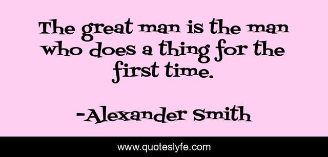 This page presents the quote "The great man is the man who does a thing for the first time.". Author of this quote is Alexander Smith. .