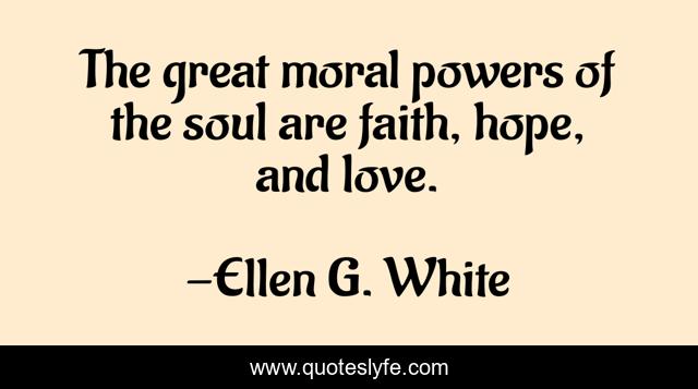 This page presents the quote "The great moral powers of the soul are faith, hope, and love.". Author of this quote is Ellen G. White. This quote is about great, love, hope, affection,.