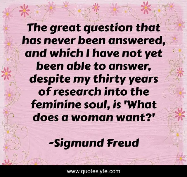 "Sigmund Freud Quotes." Quoteslyfe.com, 2025. Sun. 07 Dec. 2025. <https://www.quoteslyfe.com/quote/The-great-question-that-has-never-been-310964>.