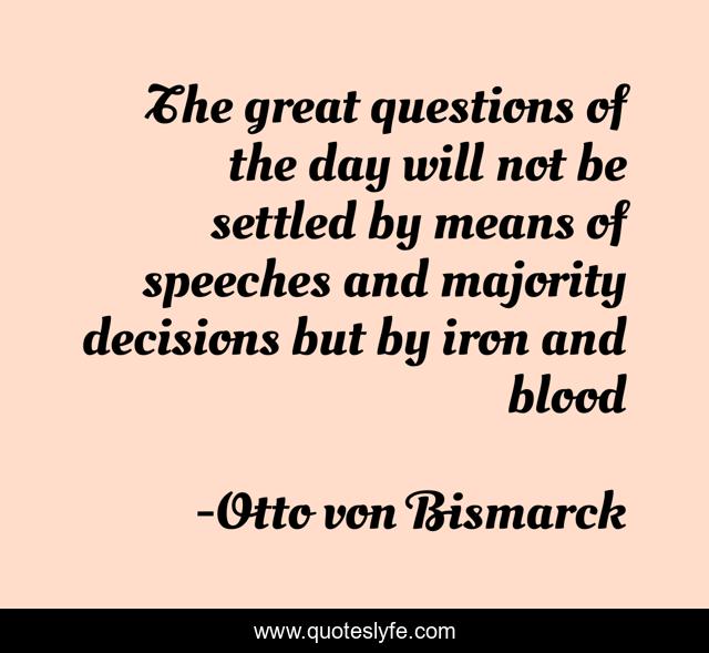 "Otto von Bismarck Quotes." Quoteslyfe.com, 2025. Fri. 05 Dec. 2025. <https://www.quoteslyfe.com/quote/The-great-questions-of-the-day-will-52290>.