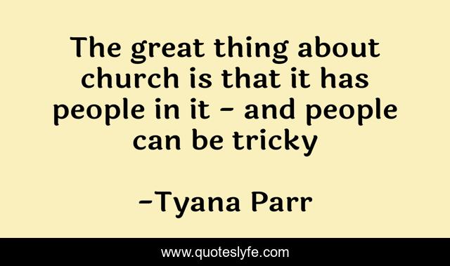 This page presents the quote "The great thing about church is that it has people in it - and people can be tricky". Author of this quote is Tyana Parr. .