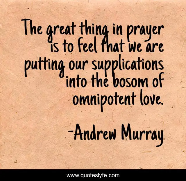 This page presents the quote "The great thing in prayer is to feel that we are putting our supplications into the bosom of omnipotent love.". Author of this quote is Andrew Murray. .