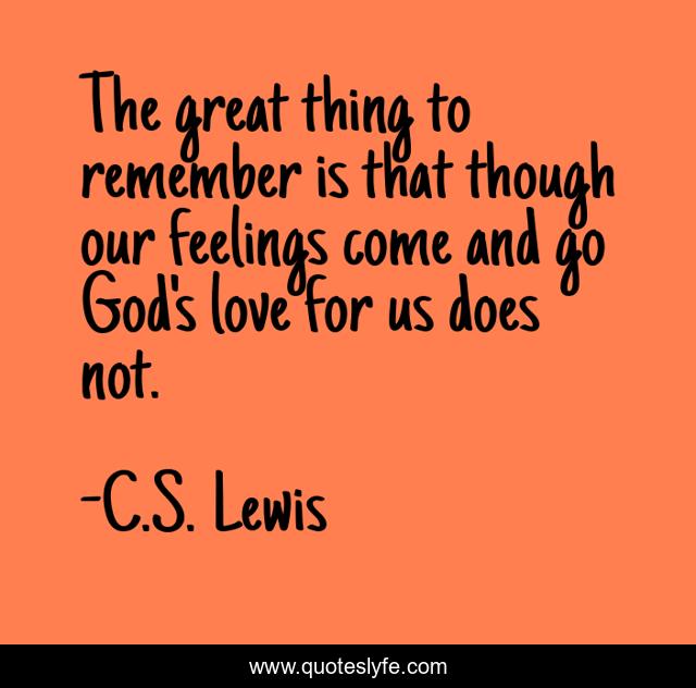 This page presents the quote "The great thing to remember is that though our feelings come and go God's love for us does not.". Author of this quote is C.S. Lewis. This quote is about god, love, inspirational, affection, enthusiasm,.