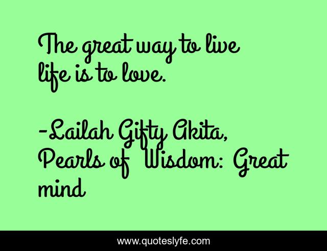 "Lailah Gifty Akita, Pearls of Wisdom: Great mind Quotes." Quoteslyfe.com, 2025. Mon. 08 Dec. 2025. <https://www.quoteslyfe.com/quote/The-great-way-to-live-life-is-105430>.