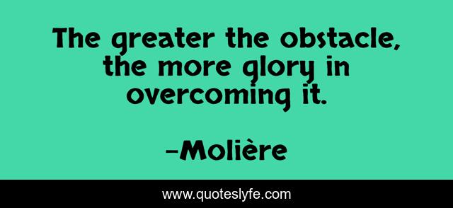 "Molière Quotes." Quoteslyfe.com, 2025. Sat. 06 Dec. 2025. <https://www.quoteslyfe.com/quote/The-greater-the-obstacle-the-more-glory-216023>.