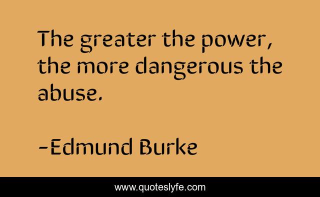 This page presents the quote "The greater the power, the more dangerous the abuse.". Author of this quote is Edmund Burke. This quote is about dangerous, abuse, greater,.