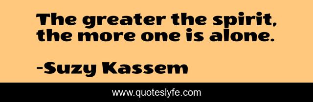 This page presents the quote "The greater the spirit, the more one is alone.". Author of this quote is Suzy Kassem. This quote is about quotes, strength, suzy-kassem, power, wisdom,.