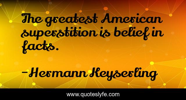 This page presents the quote "The greatest American superstition is belief in facts.". Author of this quote is Hermann Keyserling. This quote is about america, americans,.