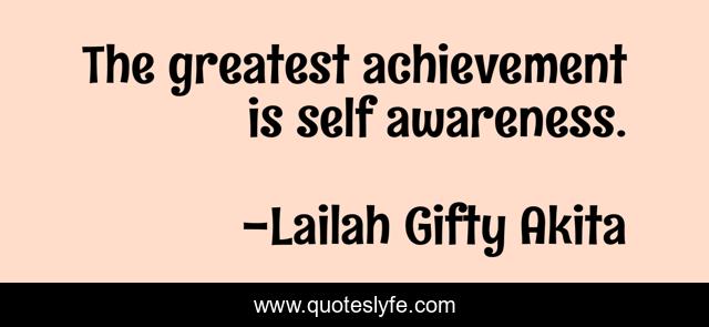 This page presents the quote "The greatest achievement is self awareness.". Author of this quote is Lailah Gifty Akita. This quote is about confidence, self-awareness, positive, self, motivational, self-realization, optimistic, achievement,.