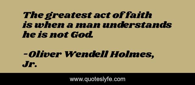 This page presents the quote "The greatest act of faith is when a man understands he is not God.". Author of this quote is Oliver Wendell Holmes, Jr.. This quote is about god, greatest, man,.