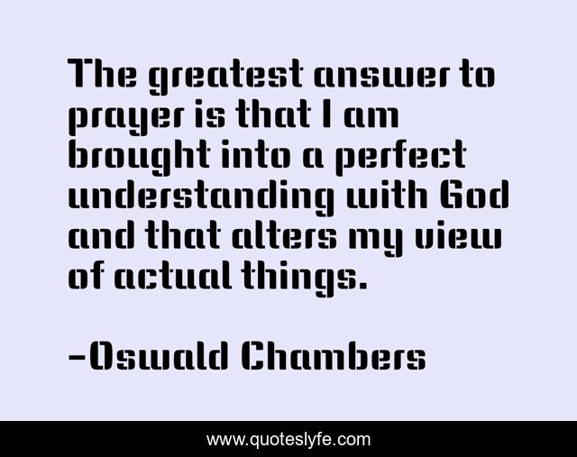This page presents the quote "The greatest answer to prayer is that I am brought into a perfect understanding with God and that alters my view of actual things.". Author of this quote is Oswald Chambers. .