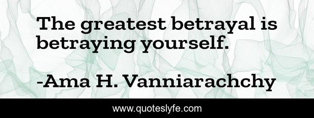 This page presents the quote "The greatest betrayal is betraying yourself.". Author of this quote is Ama H. Vanniarachchy. This quote is about betrayal, lying-to-yourself,.