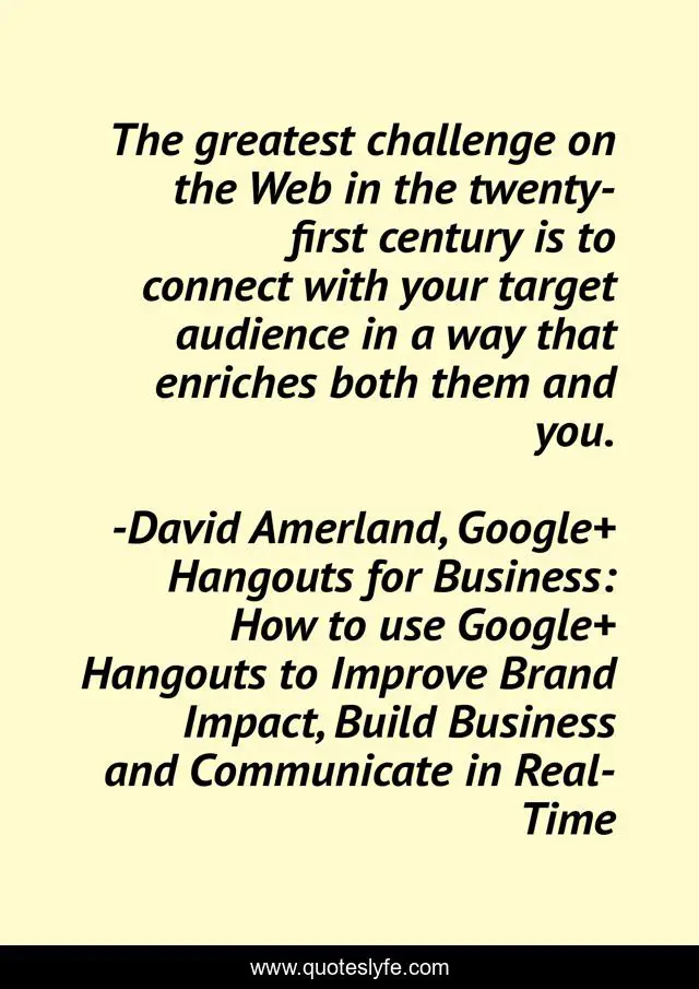 "David Amerland, Google+ Hangouts for Business: How to use Google+ Hangouts to Improve Brand Impact, Build Business and Communicate in Real-Time Quotes." Quoteslyfe.com, 2025. Sat. 06 Dec. 2025. <https://www.quoteslyfe.com/quote/The-greatest-challenge-on-the-Web-in-171436>.