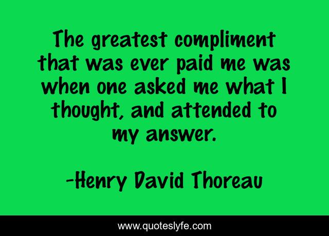 This page presents the quote "The greatest compliment that was ever paid me was when one asked me what I thought, and attended to my answer.". Author of this quote is Henry David Thoreau. .