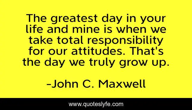 The greatest day in your life and mine is when we take total responsibility for our attitudes. That's the day we truly grow up.