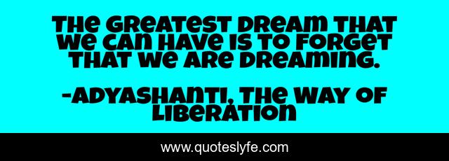 This page presents the quote "The greatest dream that we can have is to forget that we are dreaming.". Author of this quote is Adyashanti, The Way of Liberation. This quote is about dream, reality, wake-up, awakening, dreaming, waking-up, dreams,.