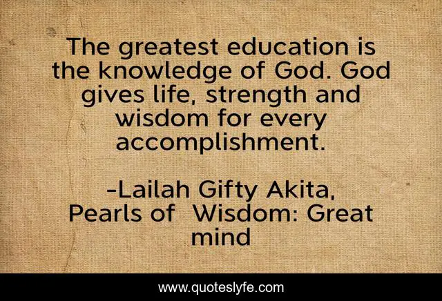 The greatest education is the knowledge of God. God gives life, strength and wisdom for every accomplishment.