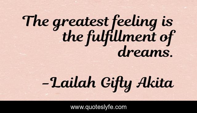 This page presents the quote "The greatest feeling is the fulfillment of dreams.". Author of this quote is Lailah Gifty Akita. This quote is about joy, fulfilling-your-potential, accomplishment, dreams, encouragement,.