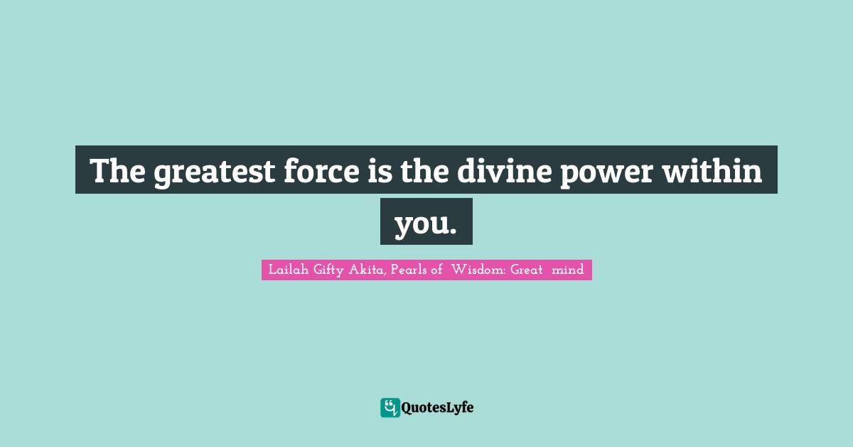 "Lailah Gifty Akita, Pearls of Wisdom: Great mind Quotes." Quoteslyfe.com, 2026. Thu. 19 Mar. 2026. <https://www.quoteslyfe.com/quote/The-greatest-force-is-the-divine-power-91841>.