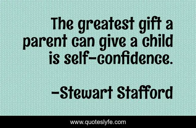 This page presents the quote "The greatest gift a parent can give a child is self-confidence.". Author of this quote is Stewart Stafford. This quote is about parenting, confidence, parents, parents-and-children,.