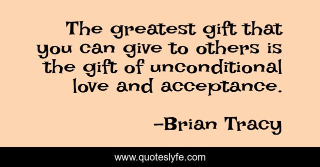 This page presents the quote "The greatest gift that you can give to others is the gift of unconditional love and acceptance.". Author of this quote is Brian Tracy. This quote is about acceptance, gift, birthday,.