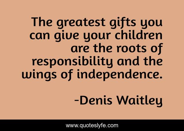 This page presents the quote "The greatest gifts you can give your children are the roots of responsibility and the wings of independence.". Author of this quote is Denis Waitley. This quote is about birthday, children, greatest,.