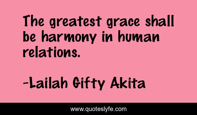 This page presents the quote "The greatest grace shall be harmony in human relations.". Author of this quote is Lailah Gifty Akita. This quote is about human, relations, humanity, harmony, inspirational, enthusiasm, grace,.