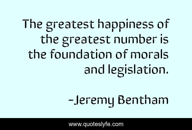 This page presents the quote "The greatest happiness of the greatest number is the foundation of morals and legislation.". Author of this quote is Jeremy Bentham. .