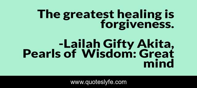 "Lailah Gifty Akita, Pearls of Wisdom: Great mind Quotes." Quoteslyfe.com, 2025. Sat. 06 Dec. 2025. <https://www.quoteslyfe.com/quote/The-greatest-healing-is-forgiveness-76192>.