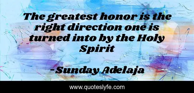This page presents the quote "The greatest honor is the right direction one is turned into by the Holy Spirit". Author of this quote is Sunday Adelaja. This quote is about right-direction, direction, honor, holy-spirit,.