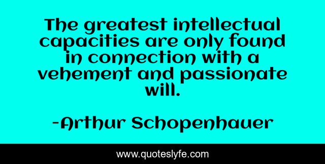 This page presents the quote "The greatest intellectual capacities are only found in connection with a vehement and passionate will.". Author of this quote is Arthur Schopenhauer. .