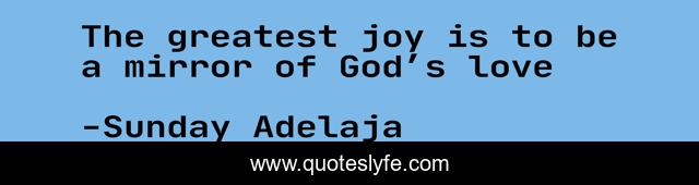 This page presents the quote "The greatest joy is to be a mirror of God’s love". Author of this quote is Sunday Adelaja. This quote is about joy, god-s-love, mirror,.